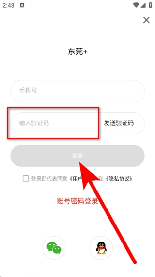在登录页面,输入手机号,点击发送验证码。