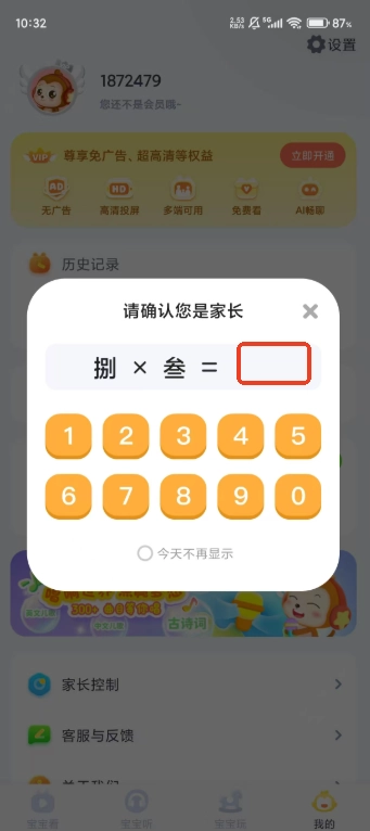 根据题目输入答案通过家长验证,