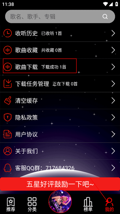 3、下载后进入“我的”界面中找到歌曲下载