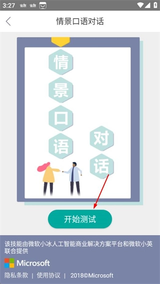 在情景口语对话页面,点击开始测试按钮后,就能进入测试情景选择页面。