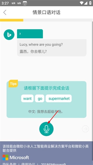 在对话练习页面,点击麦克风图标,就能开展口语对话练习。