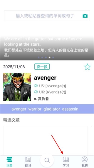在进入必应词典首页后,找到页面底部的学习选项并点击,即可进入学习页面。