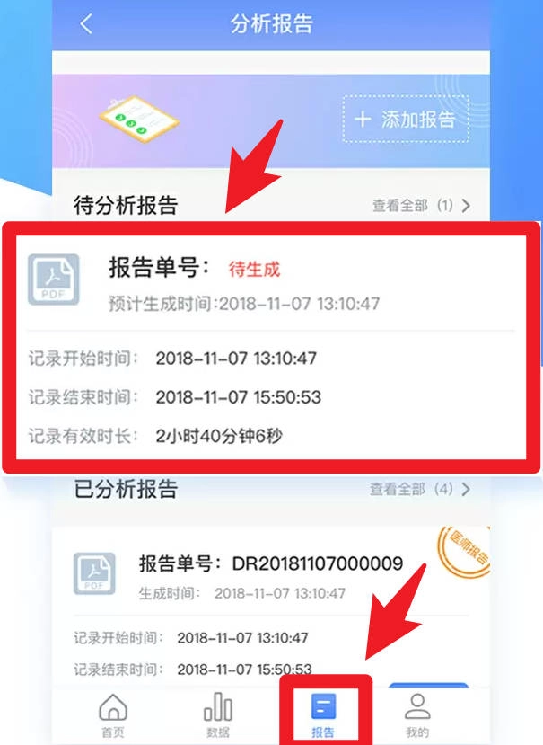 在报告界面,用户能够查看待生成与已完成的报告,系统会呈现详细的记录起始结束时间以及有效时长。
