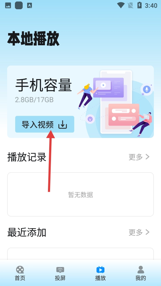 在本地播放界面,点击【导入视频】按钮,即可启动视频导入流程。