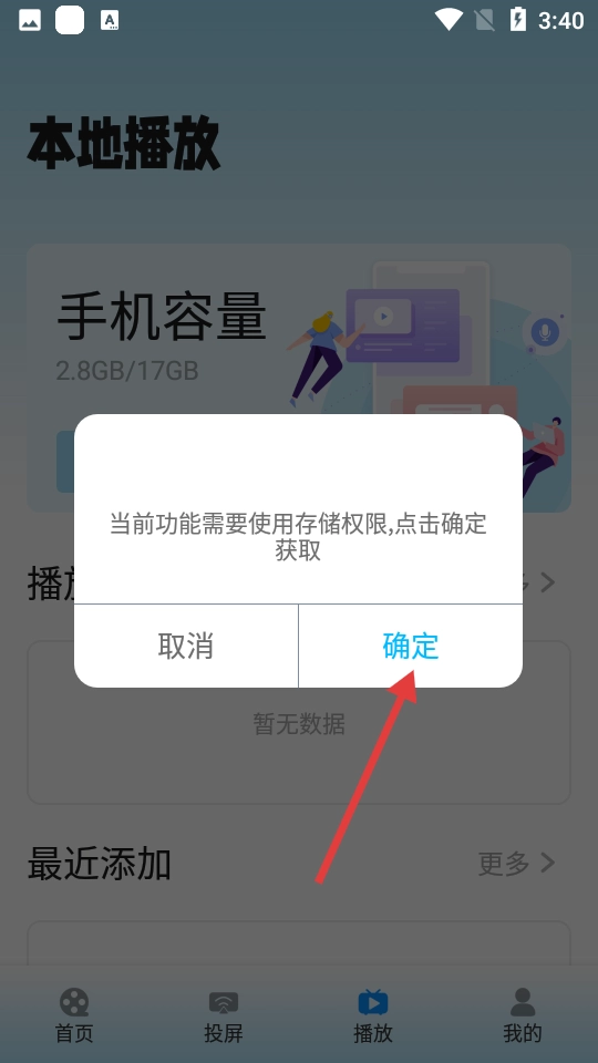 当存储权限请求弹窗出现时,点击【确定】按钮以获取存储权限。