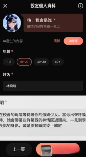 自定义AI伴侣的性别、年龄、虚拟角色的风格。