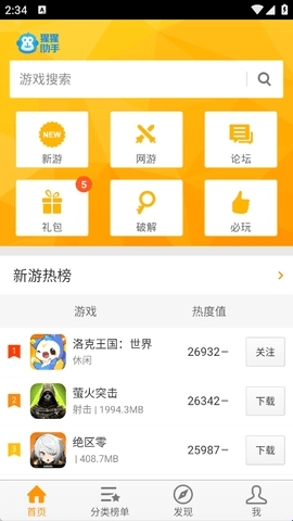 猩猩助手的游戏分类做得非常细致完善,用户可以直接点击自己喜爱的类型来获取相应游戏。
