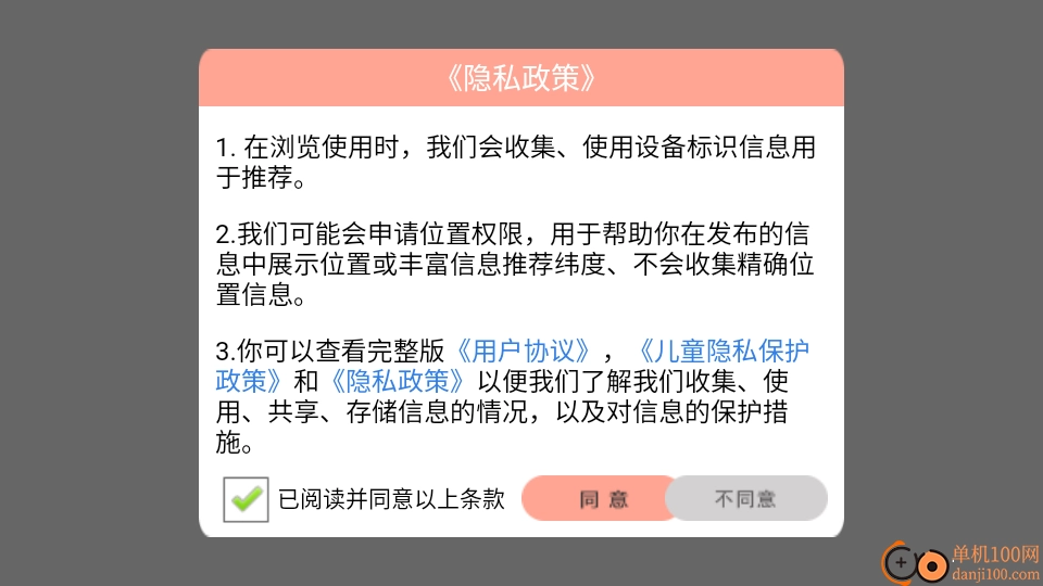 首先打开软件,仔细阅读“隐私政策”内容,阅读完毕后点击“同意”按钮,即可进入软件。