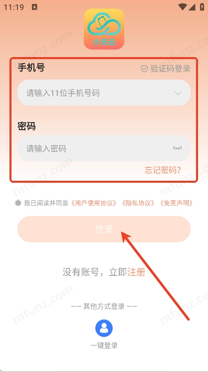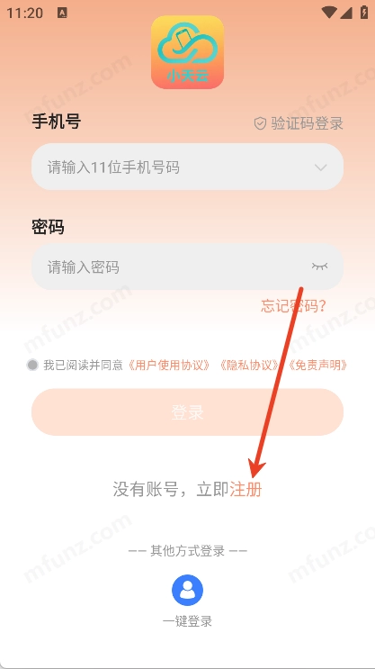 小天云手机怎么登录/注册账号