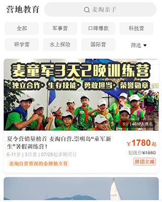 麦淘亲子游是一款专为亲子出游打造的生活服务类平台,专注于3-12岁亲子家庭,提供符合儿童年龄特点及发育需求的活动和线路,涵盖户外运动、家庭出游、职业体验、手工制作、科学探索、生态劳作、海外游学等十大主题,童趣学院提供恐龙考古、户外探险、天文观星、酒店CEO等专业课程,注重体验式成长。可以根据孩子年龄、活动时长、举办时间、距离远近快速匹配适合项目,覆盖上海、南京、杭州、武汉、北京、广州、深圳等全国多个城市。