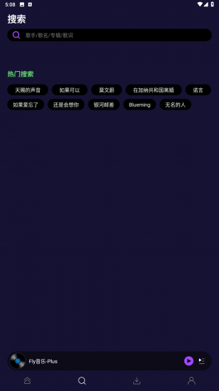 Fly音乐app官方版是一款非常受欢迎的音乐播放软件,软件汇聚了多个音乐平台上的音乐资源,而且汇聚而来的音乐资源全都可以免费播放,没有会员限制,让你可以一站式解决自己的音乐需求。软件拥有一个强大的搜索功能,有了搜索功能之后,你就可以通过搜索歌手、歌名、专辑以及歌词等关键字的方式快速找到自己感兴趣的音乐资源。另外,软件还拥有一个实用的下载功能,让你可以下载自己感兴趣的音乐资源,下载好的音乐资源可以随时随地播放。值得一提的是,软件还在下载功能的基础上提供了三种下载音质,分别是标准、HQ以及无损,从而满足你对音质的需求。