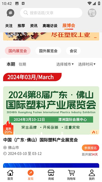1、安装好软件后进入首页,点击首页中的"展博会"