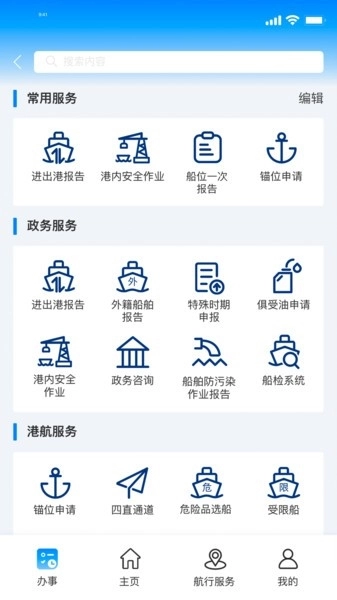 进入海事通主页后会看到许多的功能