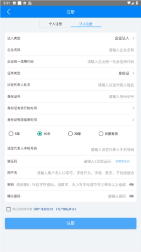 法人选择法人注册页面;