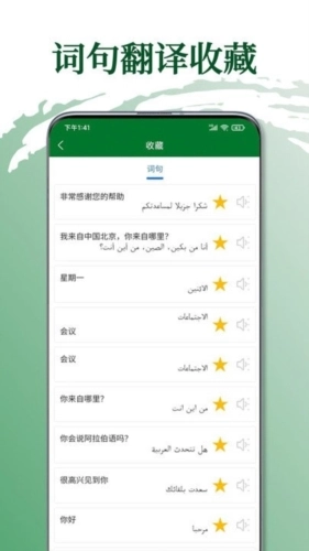 输入文本即可进行翻译,无论是短语、长句还是短文都能支持;译文不仅可以复制分享,还能收藏,搭配智能语音朗诵功能,助力你轻松实现与阿拉伯文的无障碍沟通交流。