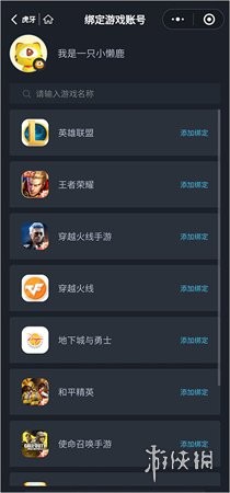 3、在这里,你可以输入游戏名称并点击右侧的“添加绑定”按钮,即可完成游戏账号的绑定。