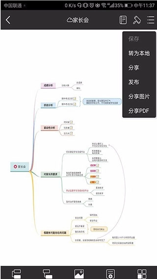 若要把已存入个人云的导图保存到手机本地,你可以在编辑界面点击右上角的工具按钮,然后选择“转为本地”选项,这样就能把文件转存到手机的本地存储空间中了。