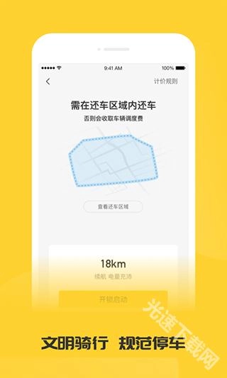 扫码解锁车辆,系统自动开启计费;支持预约挑选心仪车辆,搭配智能导航功能,车辆续航状态实时显示。