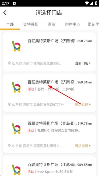 在爱逛街页面找到目标选项并点击,即可进入对应的商场详情页面。