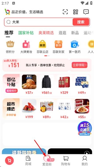 在这个应用的首页,点击底部的“爱逛街”选项,就能进入爱逛街页面。