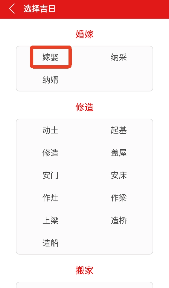 在安装打开,进入主页点击"择吉日"。