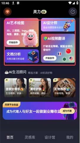 在首页能够直接运用AI艺术绘图、AI视频翻译以及AI生活顾问之类的功能。