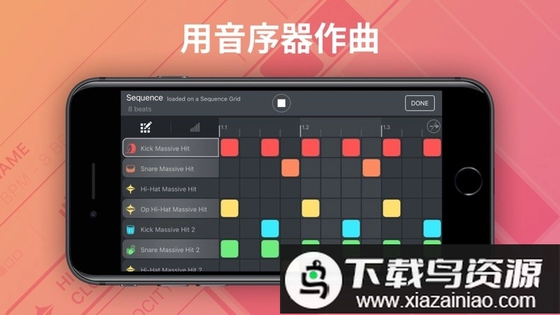 使用节拍重复垫来循环轨道,循环时长能够在2拍到1/16拍的范围内进行调整。