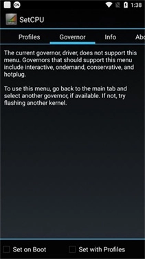 setcpu安卓版拥有智能调频功能,可依据手机的使用状况自动调节CPU频率。