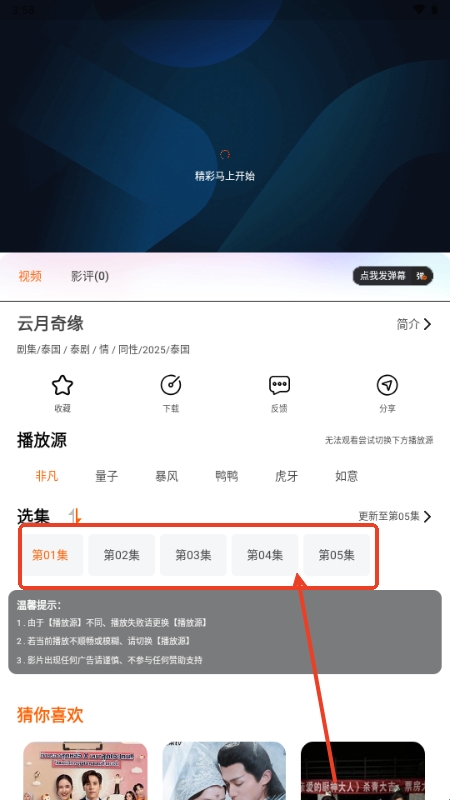 离线缓存功能:支持智能缓存,用户可以提前下载喜欢的影视内容,随时随地离线观看,节省流量。