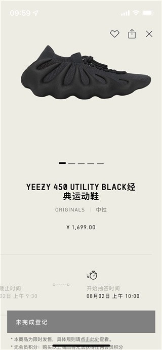 若您有意参与这双鞋的抽签抢购活动,需先完成抽签信息登记,方可获得进入后续线上抽签环节的资格。需要注意的是,完成信息登记并不等同于中签,最终是否中签,请以您后续收到的阿迪达斯官方中签通知为准。