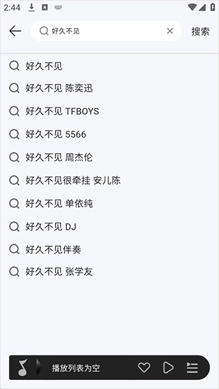 打开当下音乐,借助搜索功能输入歌名、歌手名等信息来进行搜索。