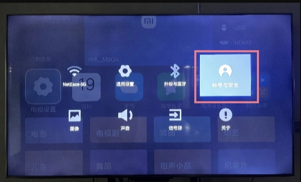 在小米或红米电视里,依次找到“设置”选项,然后进入“账号与安全”页面。