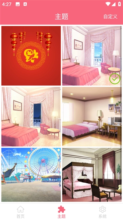 你可以从主题里挑选各种各样的壁纸背景,还能点击右上角的自定义选项导入壁纸图片。