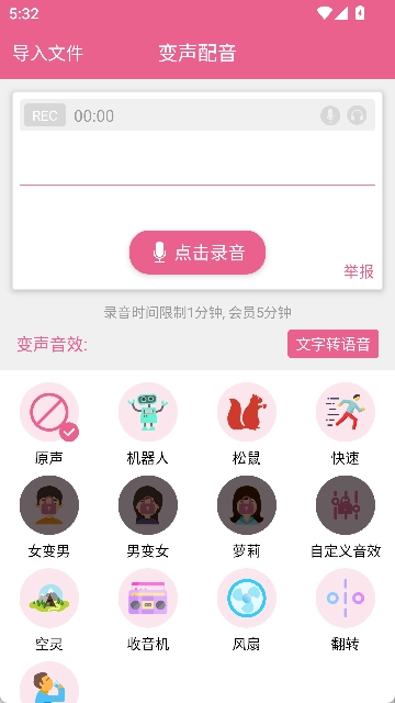 录音和文字转语音这两个功能挺实用的,给短视频配音时用起来特别方便。声音鉴定功能也挺有意思,这下终于清楚自己的声音是什么类型了。