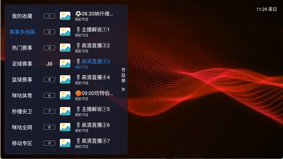 高清轮播频道:提供多个高清轮播频道,播放经典电影、电视剧、纪录片等内容,用户可以随时观看高质量节目。