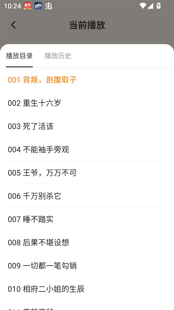 我们还能打开有声小说的播放目录,从中挑选自己喜欢的章节来播放收听。