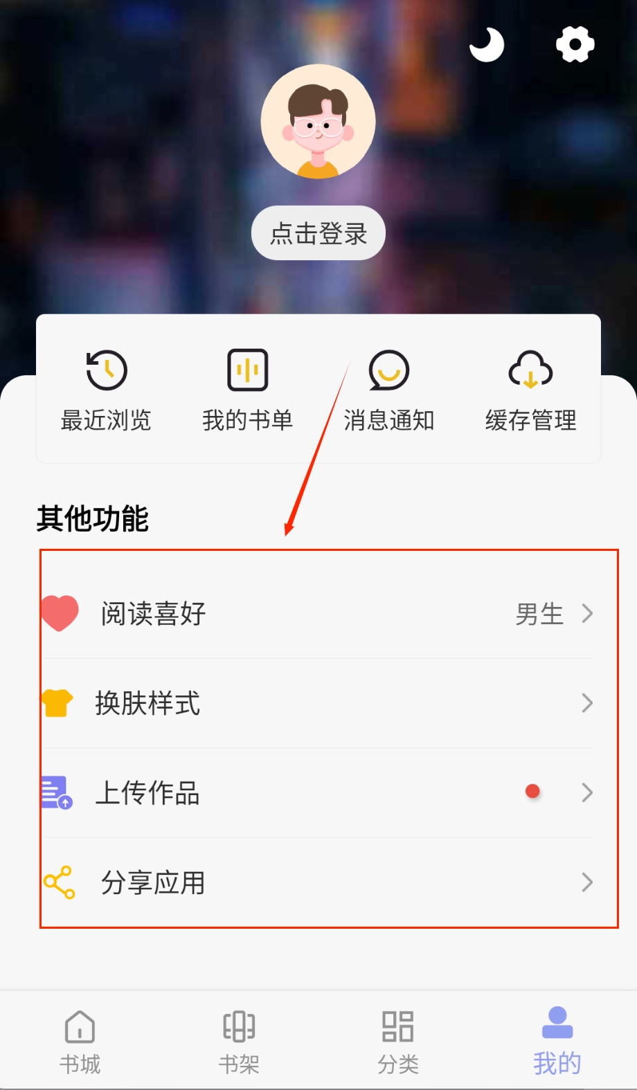 个人中心可用于管理账号信息与阅读设置,在“我的”页面中,用户能够查看自己的阅读历史,对昵称和头像进行修改,并且可以清理缓存以释放手机存储空间。
