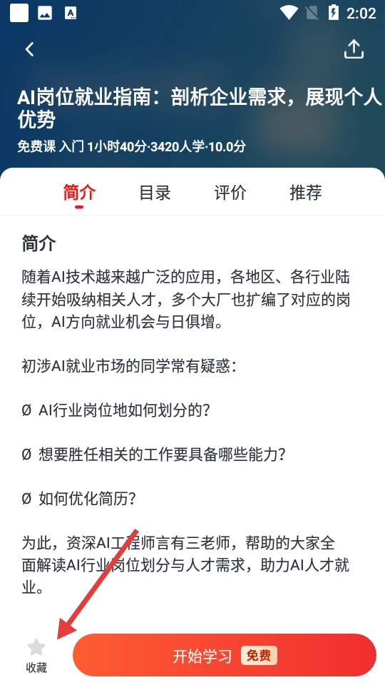 在课程详情页点击【收藏】,完成课程收藏操作。