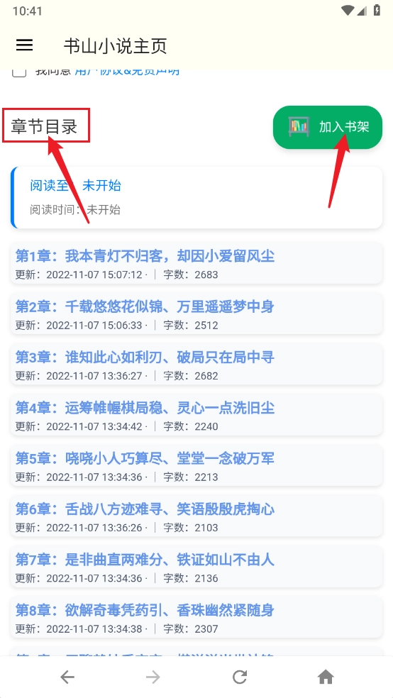 选择所需阅读的章节进入即可在阅读界面进行阅读。