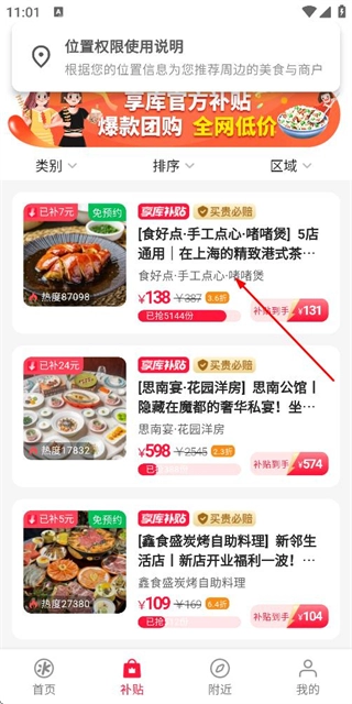 在首页点击底部的补贴选项,即可进入补贴商品的列表页面。