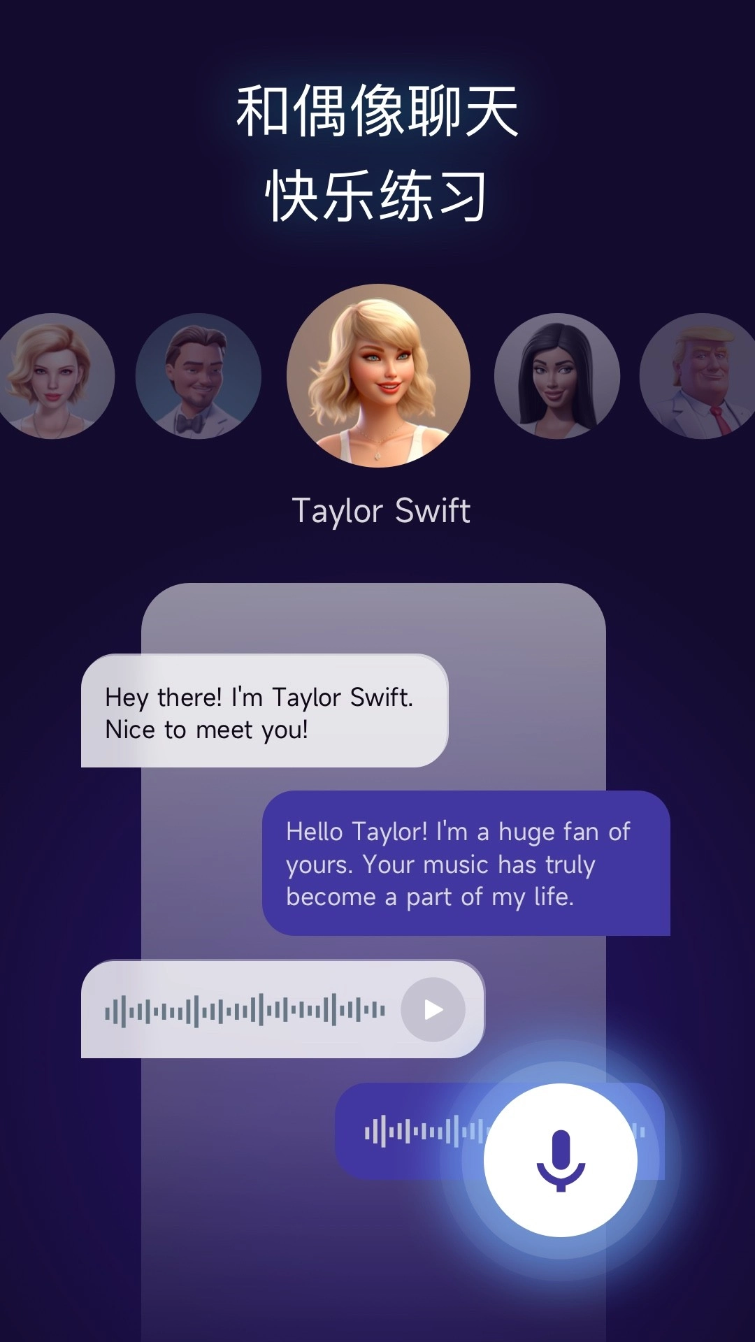 • 名人对话:通过与AI模拟的考官、名人进行对话,增强口语表达的自信心和流畅度。