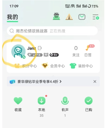 进入qq音乐页面,点击头像,如图。