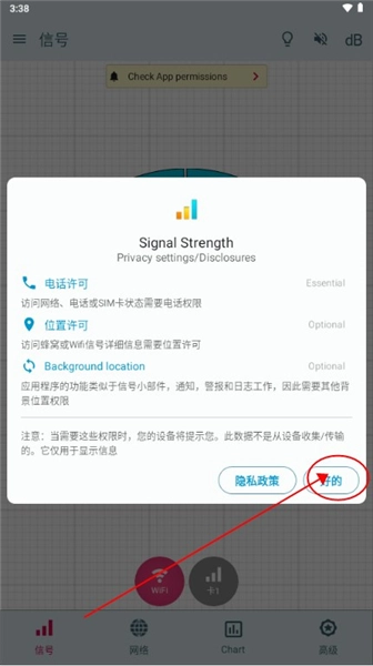 为了确保功能正常运行,需要开启必要的基础权限,其中包括授予网络信息访问权限;如果您要使用信号widgets等相关功能,则还需开启位置权限。