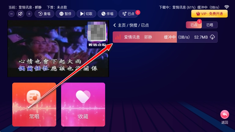 接着进入播放屏幕,就可以开启大屏k歌体验。
