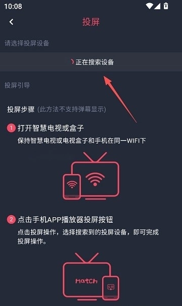 然后只要保证手机和投屏设备处于同一个WiFi网络环境中,就能完成投屏操作了。