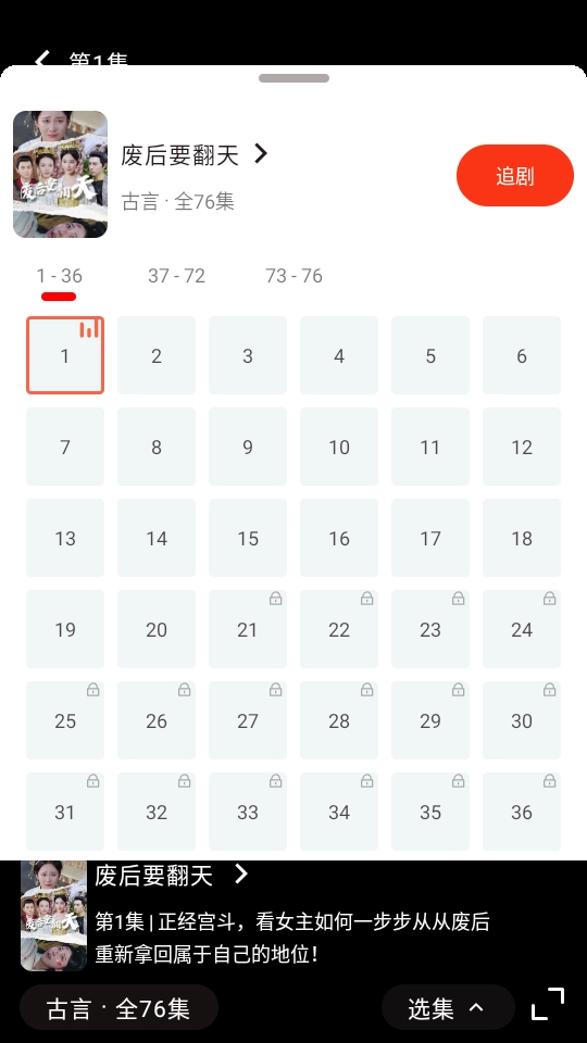 进入播放页面后,就能便捷查看这部短剧的全部选集,便于快速找到你想观看的内容。