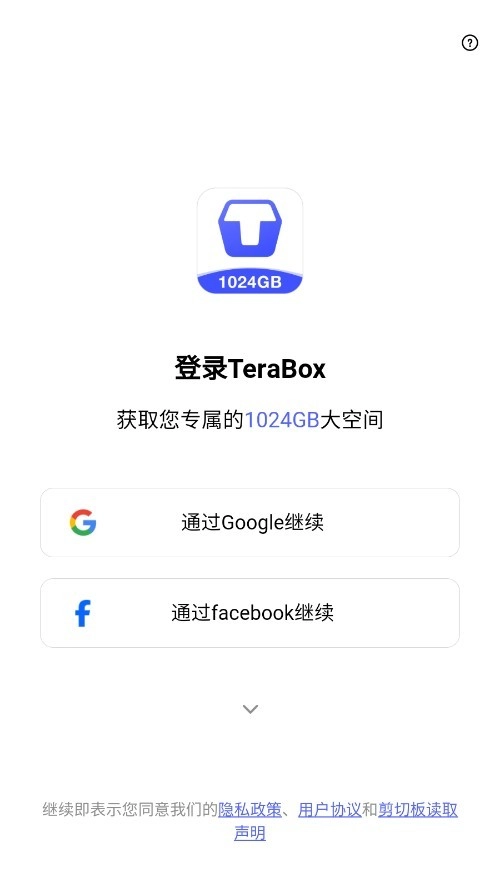 打开TeraBox软件,进入登录界面,选择登录方式