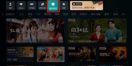 3、在海信/Vidda电视首页按遥控器上键,找到【我的应用】点击打开。