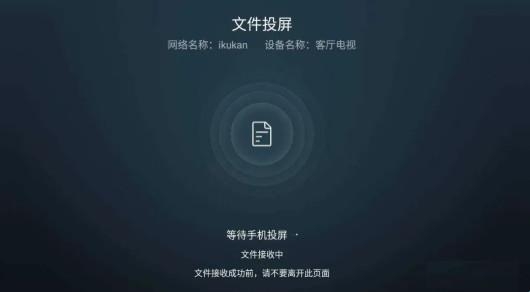 6、 手机和电视连接同一WiFi,手机打开海信爱家,选择【文件】,找到【酷看桌面】的安装包投屏到电视上(注:文件传输过程中电视上切勿退出文件传输页面)