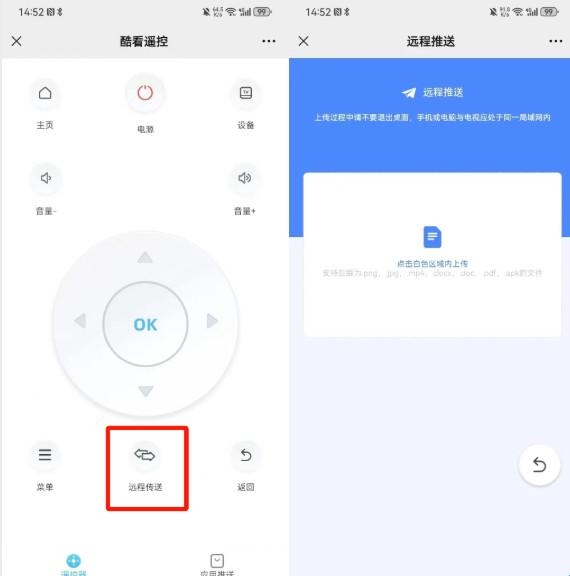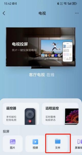 3、连接完成后即可通过手机控制电视,或把手机里的图片、视频、音频、文件、安装包推送到电视上,还可以进行应用推送,轻松安装各种电视软件。